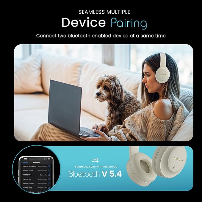 • Dual Pairing Capability: Switch effortlessly between two devices with Dual Pairing. Whether you’re listening to music on your laptop and need to take an incoming call on your phone, the Hammer Vibe overhead headphones ensure easy switching without the need to disconnect and reconnect each time